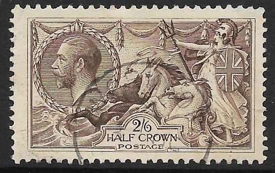 1918 SG413a 2/6d Olive Brown Seahorse Stamp Bradbury Very Fine Used (Stock SH0041)