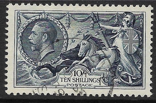 1934 SG452 10/- Dull-Grey Blue Re-Engraved Seahorse Stamp Very Fine Used (Stock SH0051)
