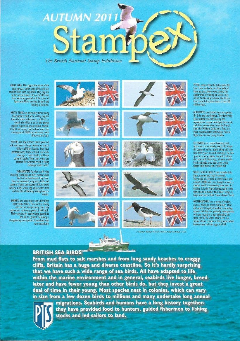 ST18 2011 Autumn Stampex Smilers Sheet - British Sea Birds