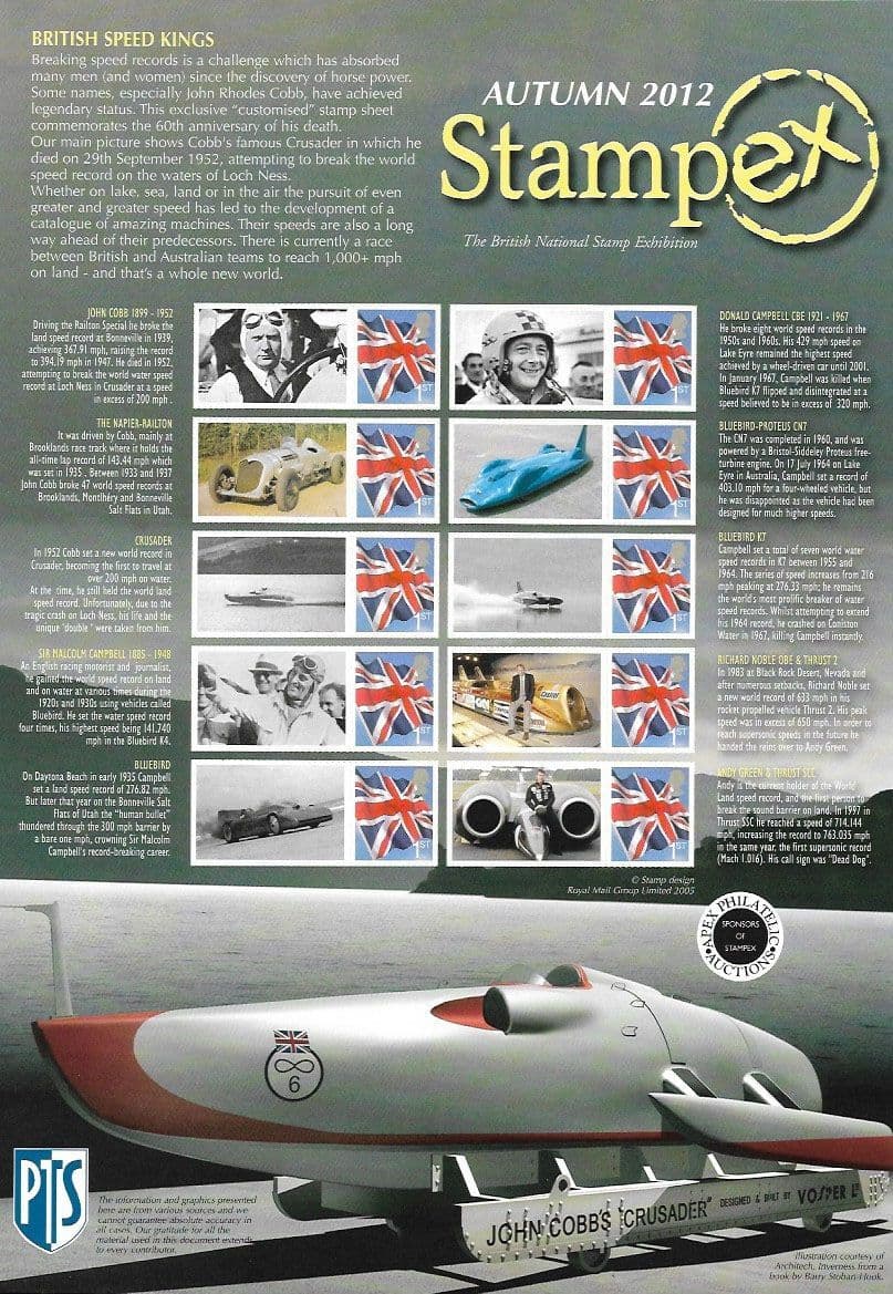 ST20 2012 Autumn Stampex Smilers Sheet - British Speed Kings