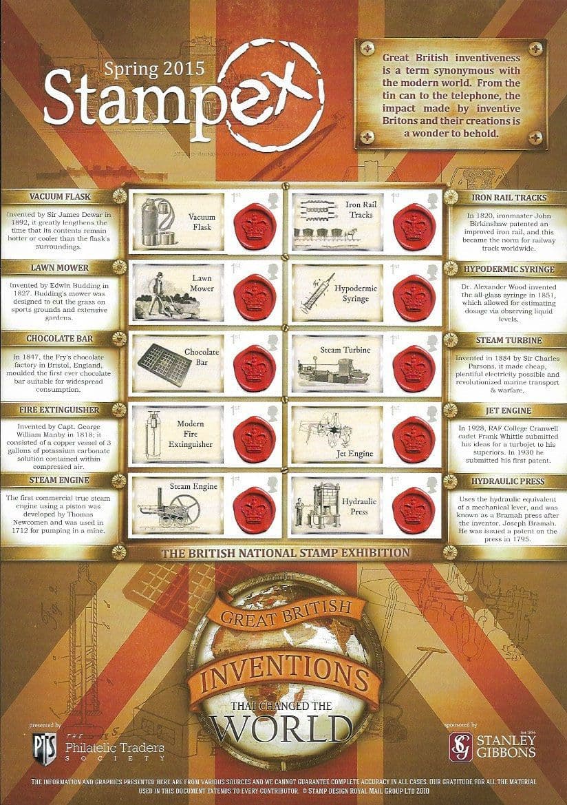 ST25 2015 Spring Stampex Smilers Sheet - British Inventions