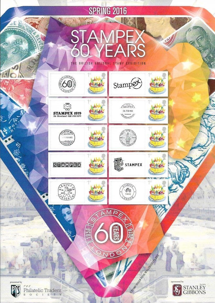 ST27 2016 Spring Stampex Smilers Sheet - 60 Years of Stampex